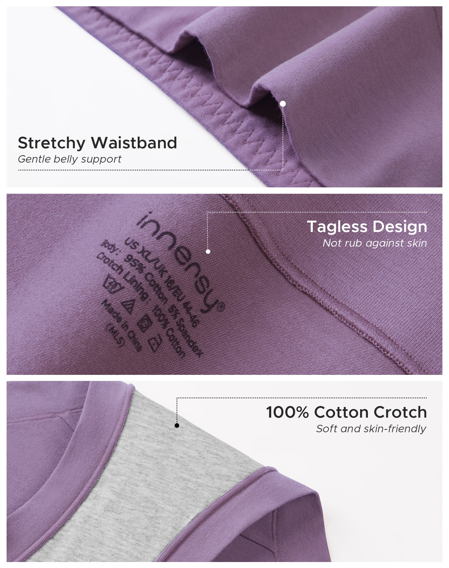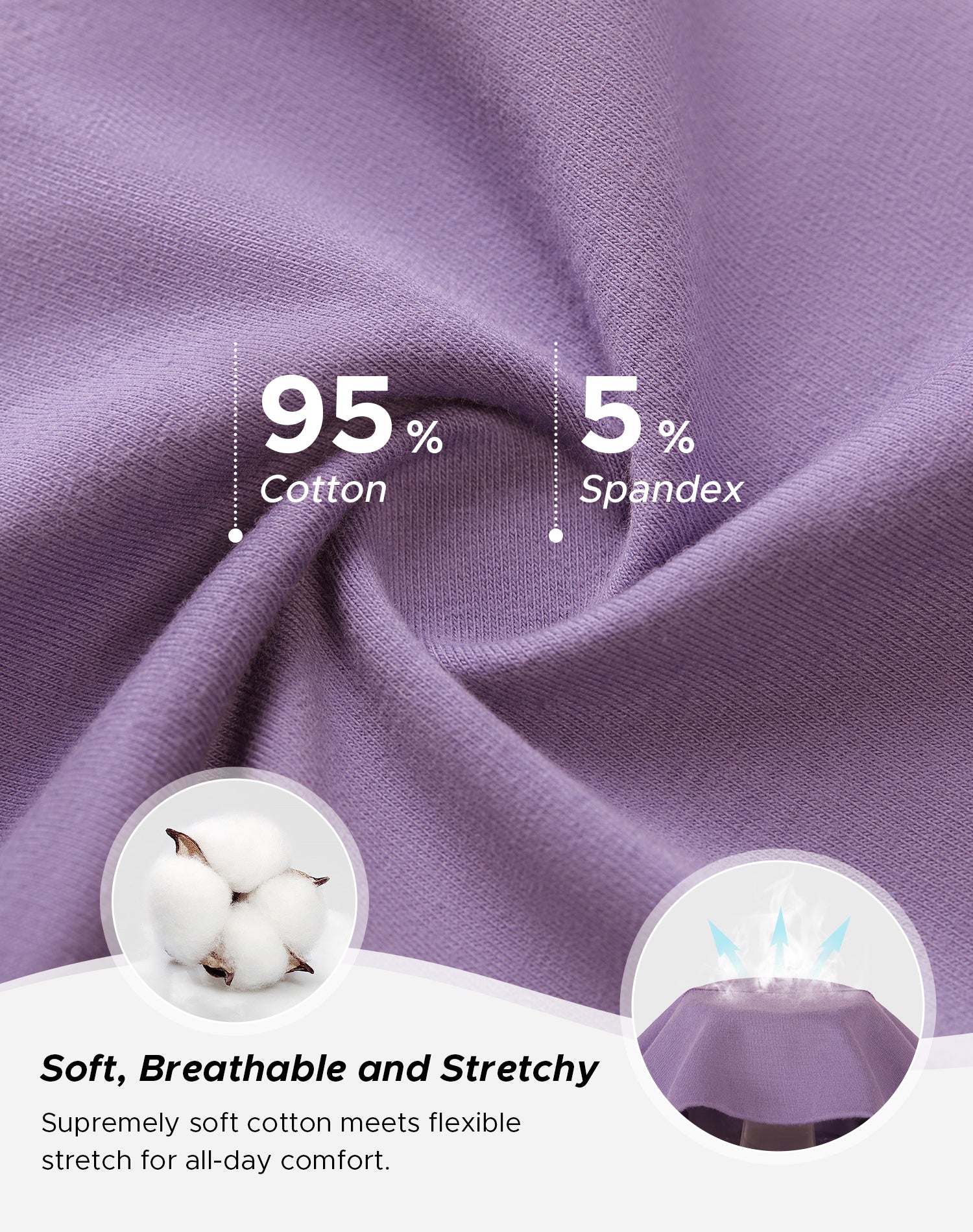Fabrics: Body: 95% Cotton, 5% Spandex; Crotch: 100% Cotton