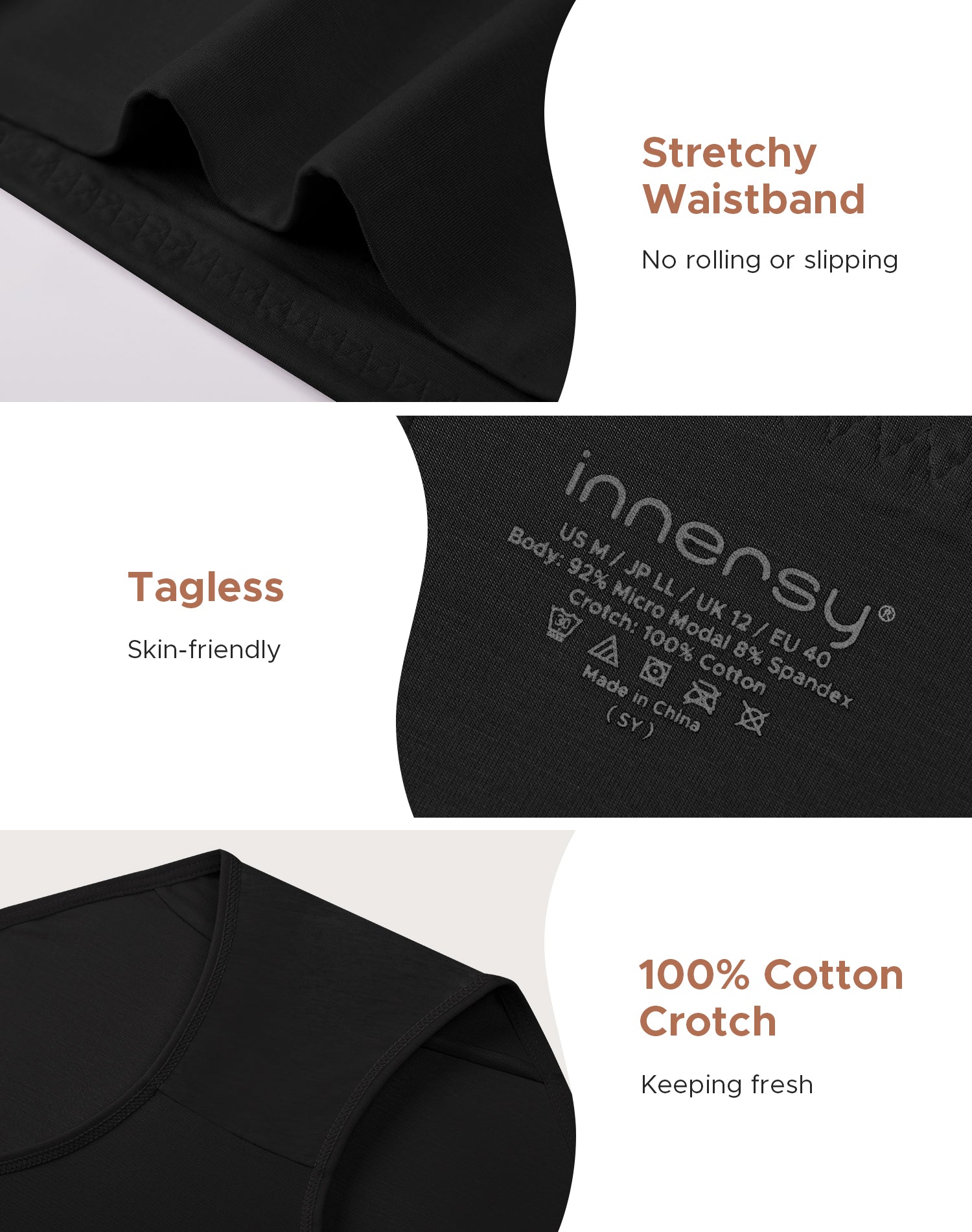 - These women’s modal underwear are made from breathable, silky-soft modal fabric that feels like a second skin, offering all-day comfort and gentle support without tightness