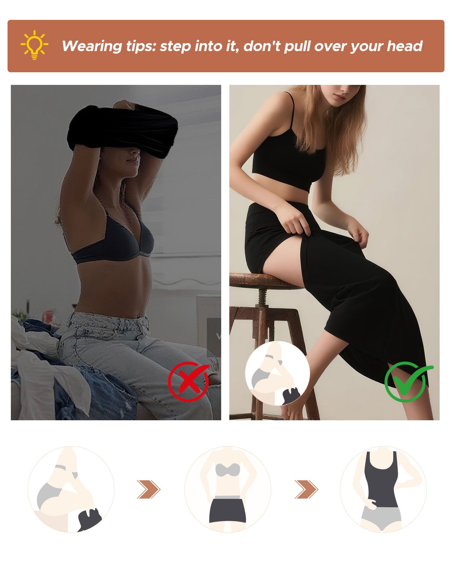 Wearing tips: step into it, don't pull over your head