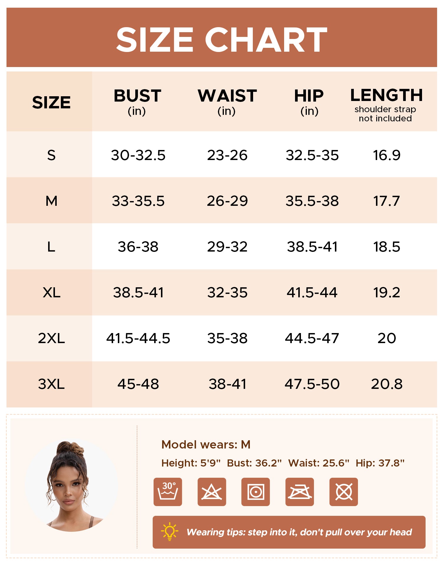 | Size | Bust(in) | Waist(in) | Hip(in) |